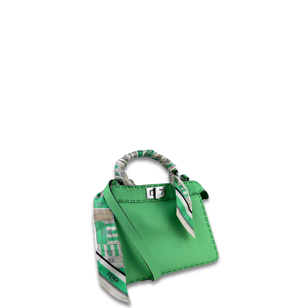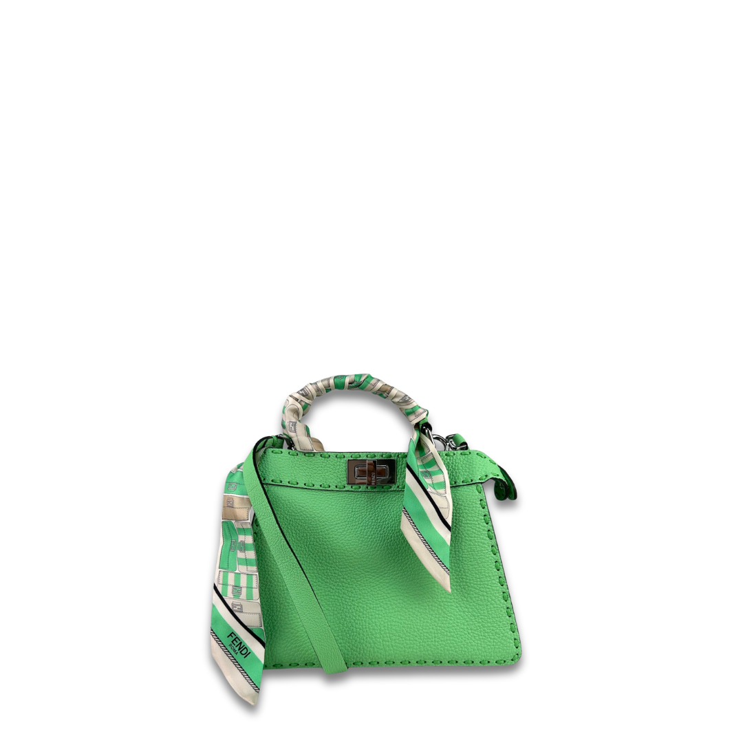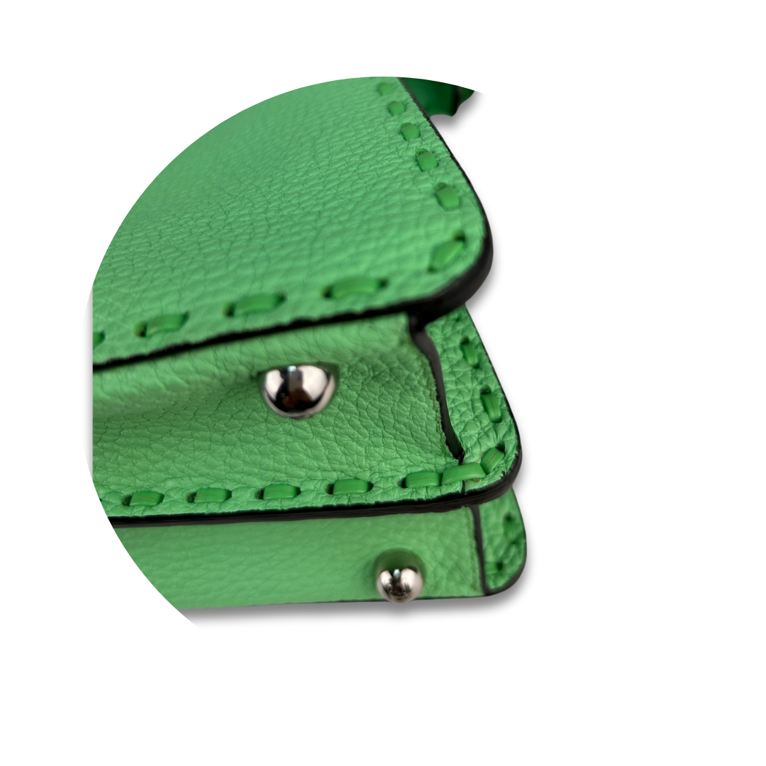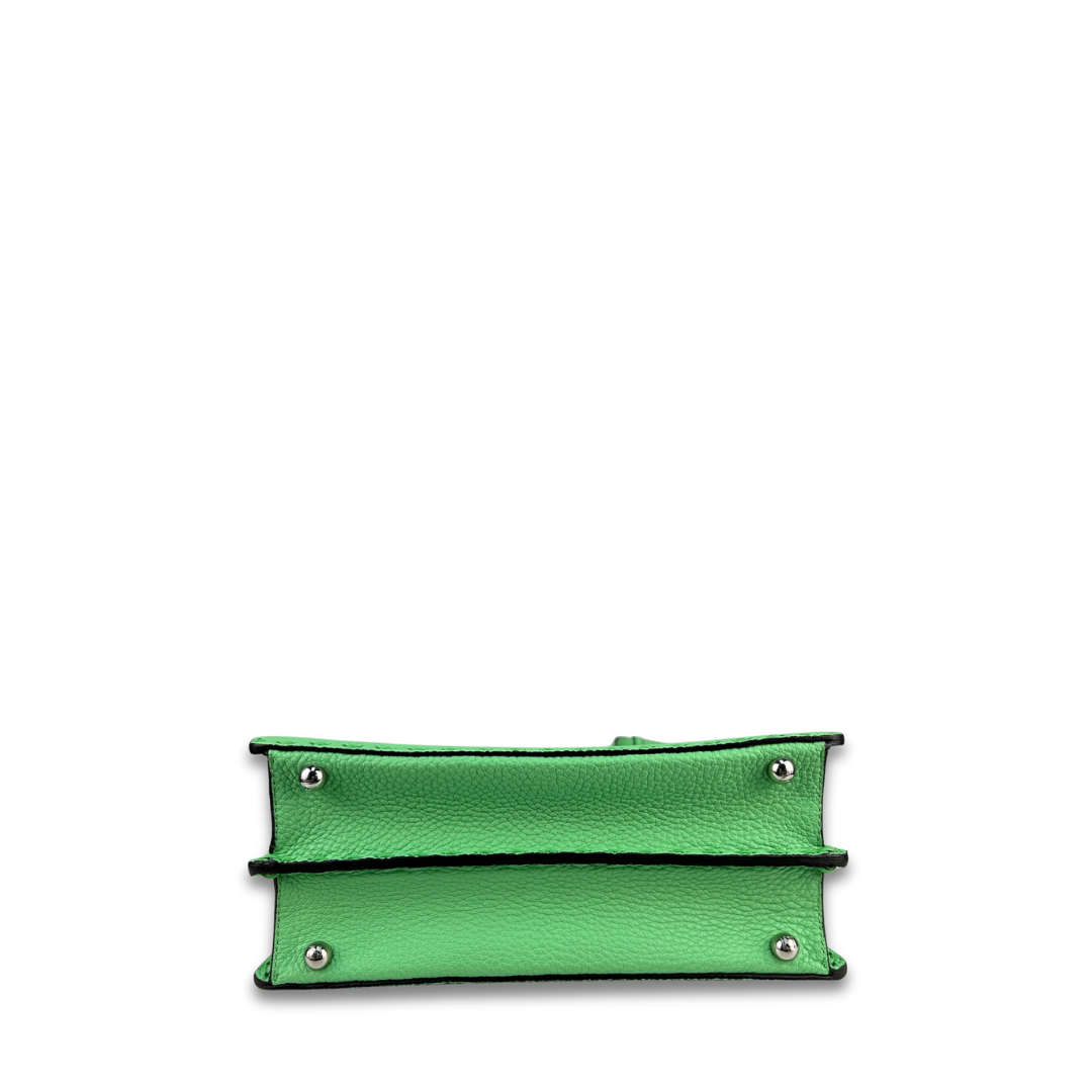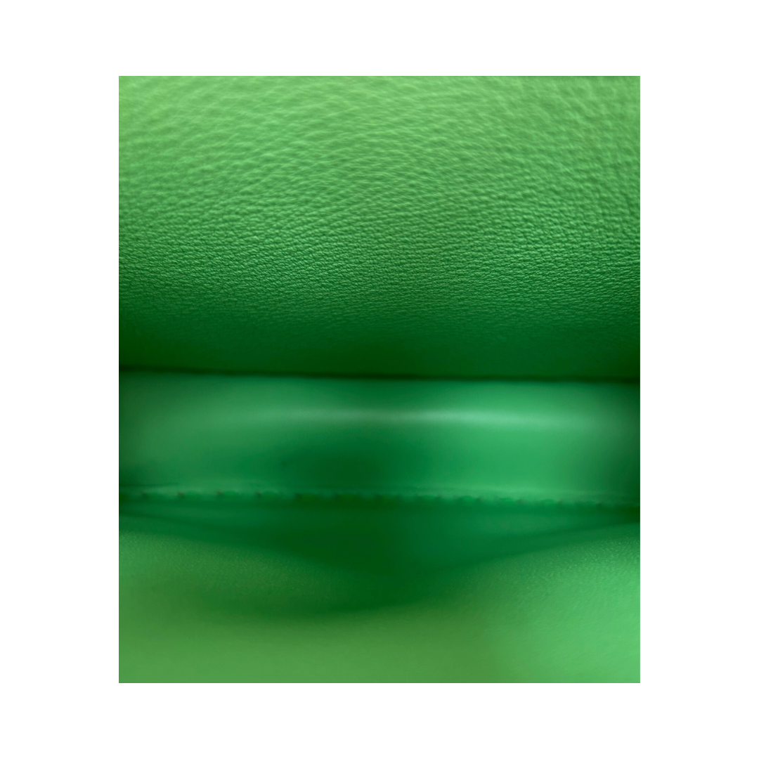 Green Nappa leather exterior with tonal leather interior and silver-tone hardware. Features leather top handle, detachable and adjustable crossbody strap, dual side twist lock closure, two compartments separated by central partition, and interior flat pocket. Includes certificate of authenticity and original dust bag.