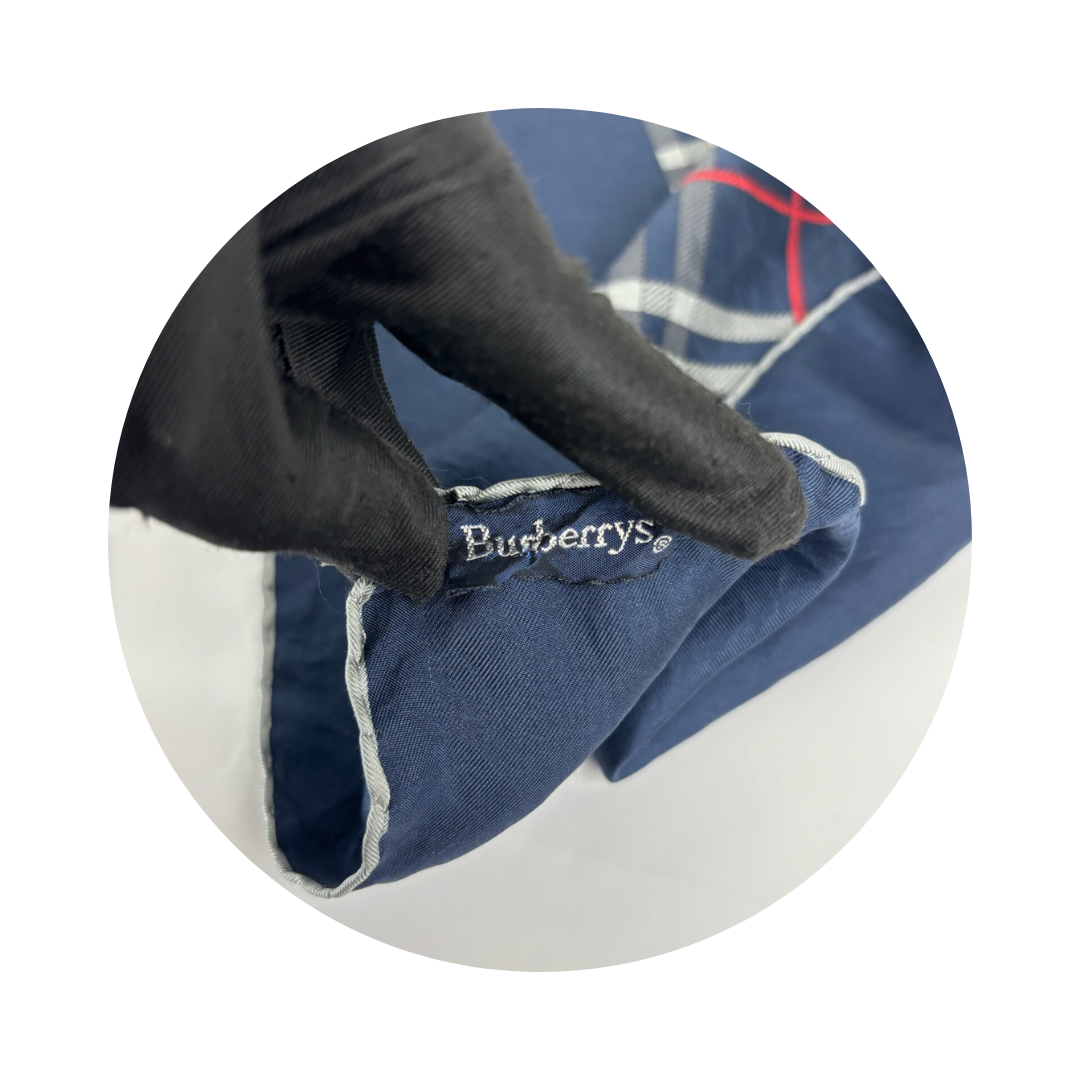 Burberry Navy Plaid Silk Scarf