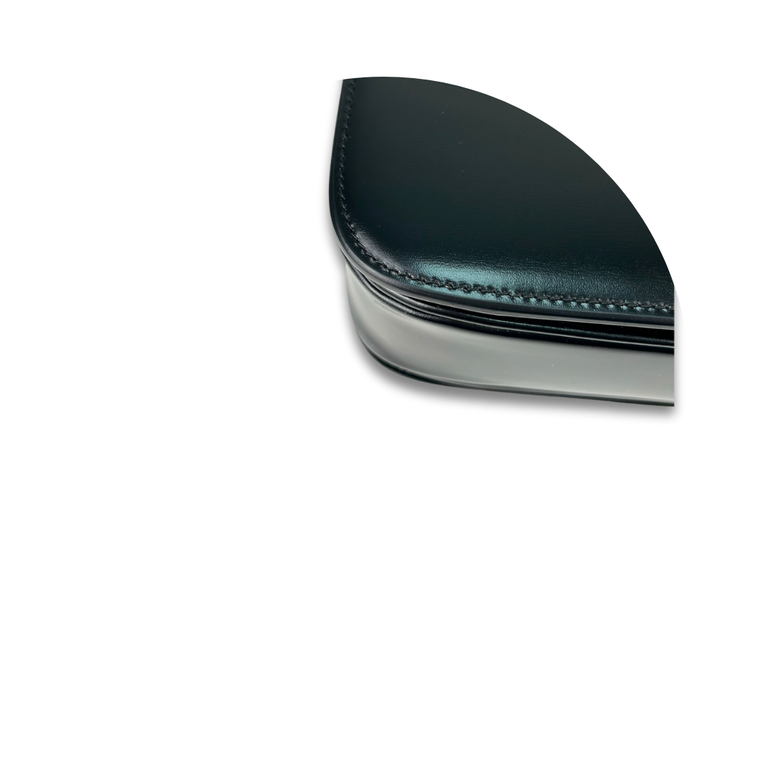 Smooth black calfskin exterior with black lambskin interior and gold-tone hardware. Features Celine Triomphe clasp closure, adjustable crossbody strap, 3 interior compartments, and 2 interior pockets. Includes certificate of authenticity and dust bag.