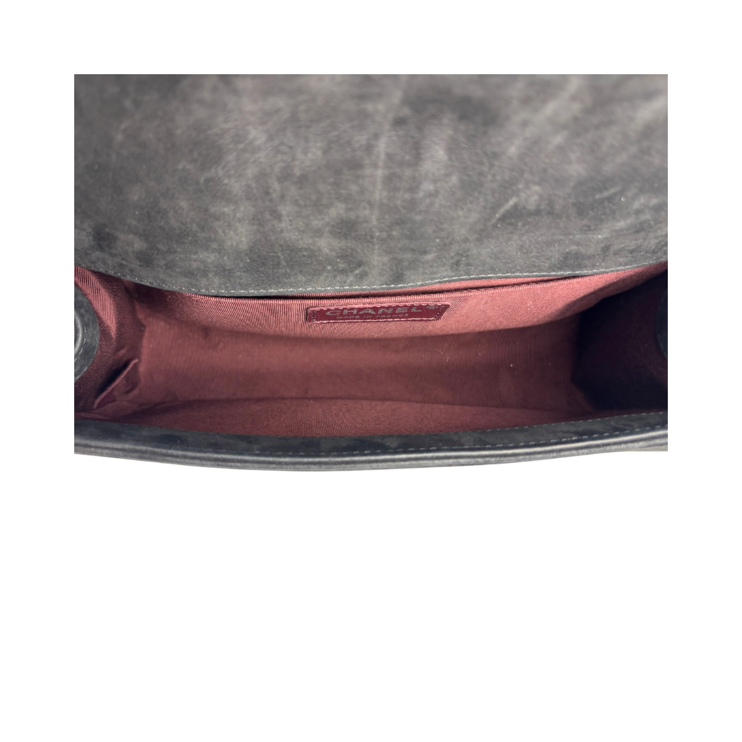 Chanel Black Suede Chevron Old Medium Boy Bag
