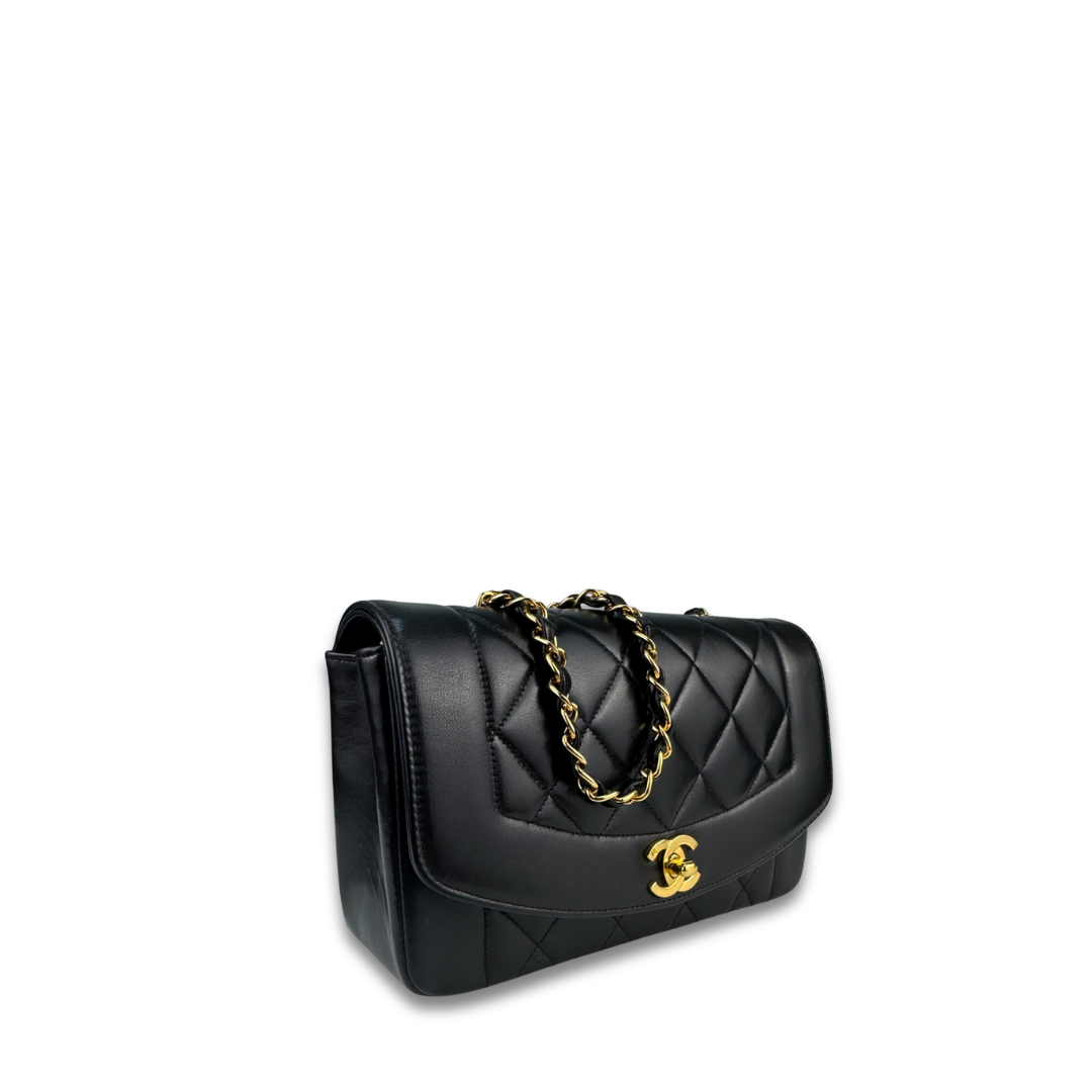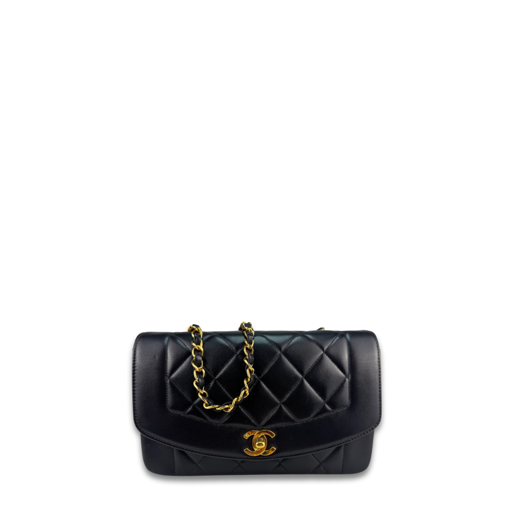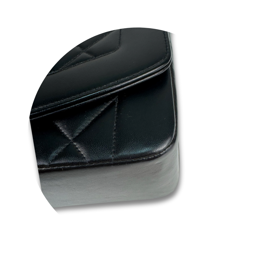 Black lambskin exterior with burgundy calfskin interior and gold hardware. Features interlocking CC turnlock closure, detachable leather-woven chain strap, and 2 interior pockets. Includes certificate of authenticity, original dust bag, and authenticity card.