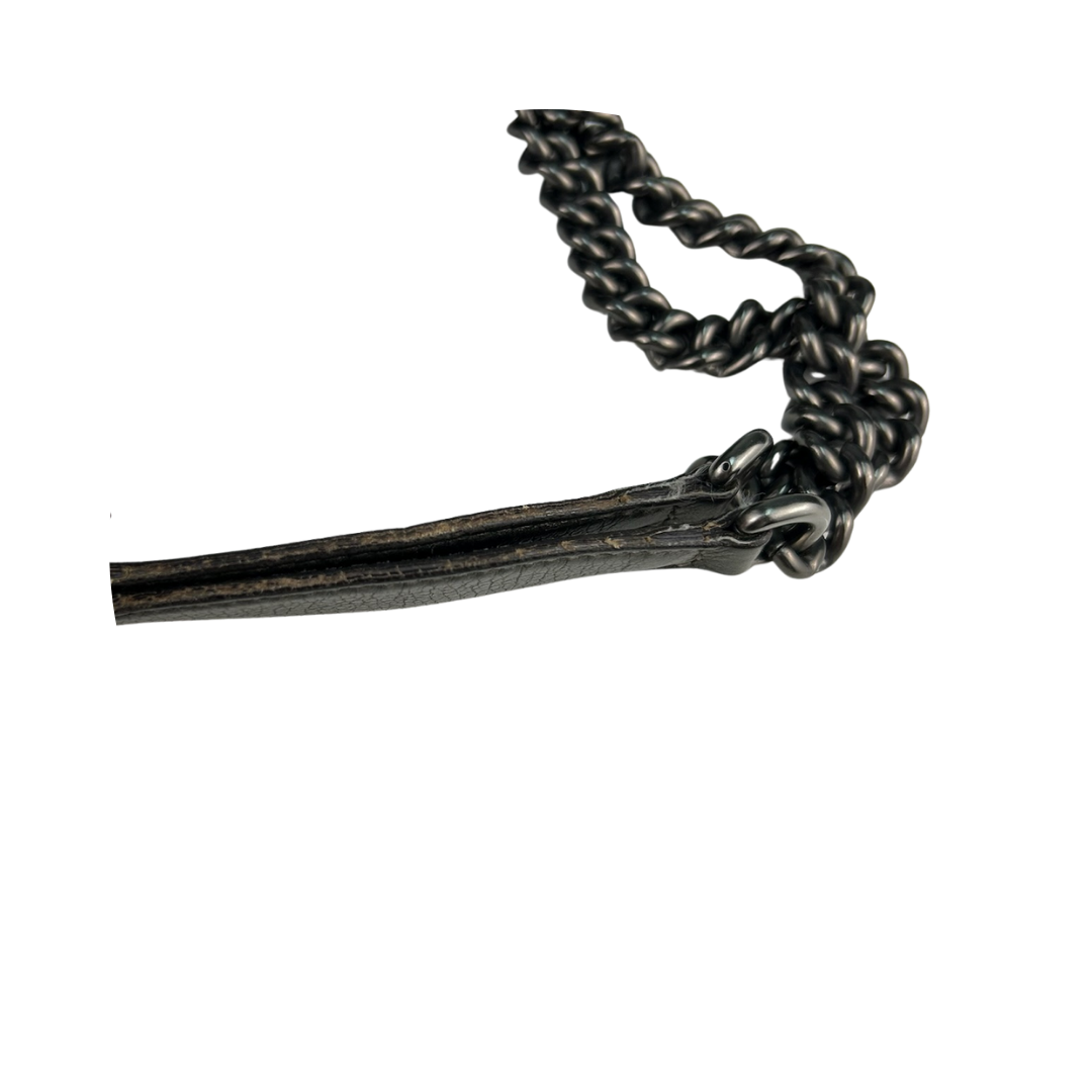 Grey textured leather exterior with beige woven interior and gunmetal hardware. Features clasp closure at top, three interior pockets, single convertible chain link shoulder strap with removable tassel accent and leather shoulder guard, and embossed GG logo at front. Please note wear on corners and shoulder guards. Includes certificate of authenticity.