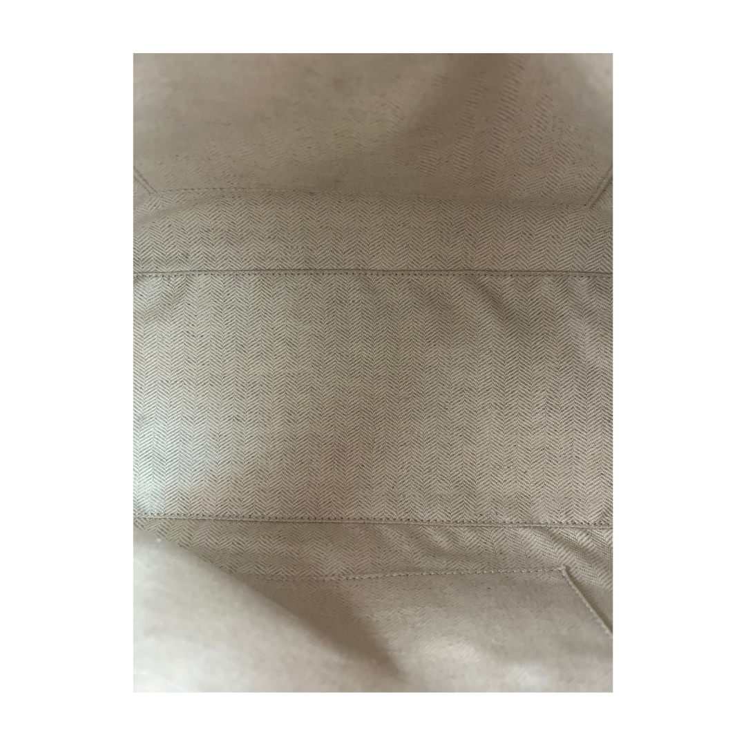Pink color-blocked calfskin exterior with beige canvas interior and gold-tone hardware. Features top handle, detachable and adjustable shoulder strap, exterior zipper pocket, concealed zipper closure, and interior pockets. Includes certificate of authenticity and original dust bag.