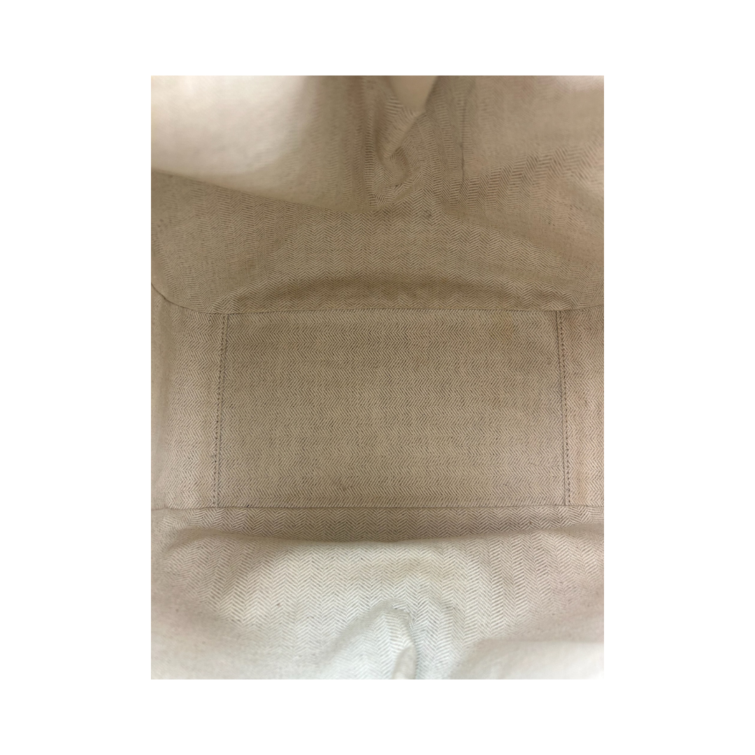 Brown leather exterior with tan leather trim, canvas interior, and gold-tone hardware. Features dual leather top handles, detachable and adjustable leather shoulder strap, zipper-expandable sides, internal hook closure, embossed Anagram, external zipper pocket, and internal slip pockets. Includes certificate of authenticity and original dust bag.