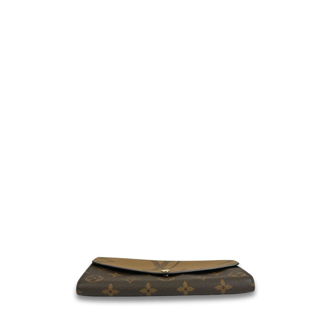 Classic LV Monogram and Reverse LV Monogram coated canvas exterior, with black crossgrain leather interior, and gold-tone hardware. Features 12 card slots, zipper change pocket, and several bill compartments. Includes certificate of authenticity and original dust bag.