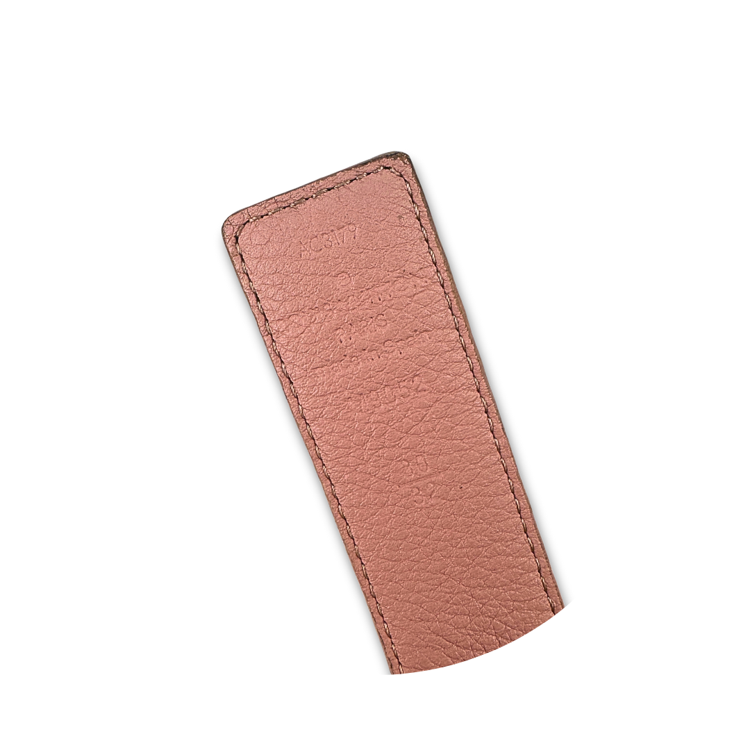 Louis Vuitton Monogram coated canvas belt reverses to pale pink ballerine leather with gold-tone LV Initiales monogram buckle. Please note, scratching on the buckle. Includes certificate of authenticity.