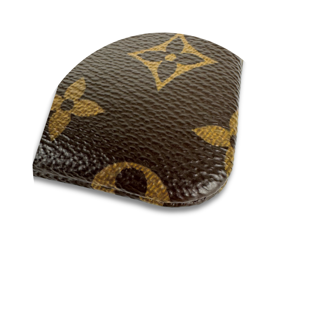 Classic LV Monogram coated canvas exterior with brown crossgrain leather interior and brass hardware. Features zip closure and clasp on chain to attach to keys or inside a larger bag. Includes certificate of authenticity.