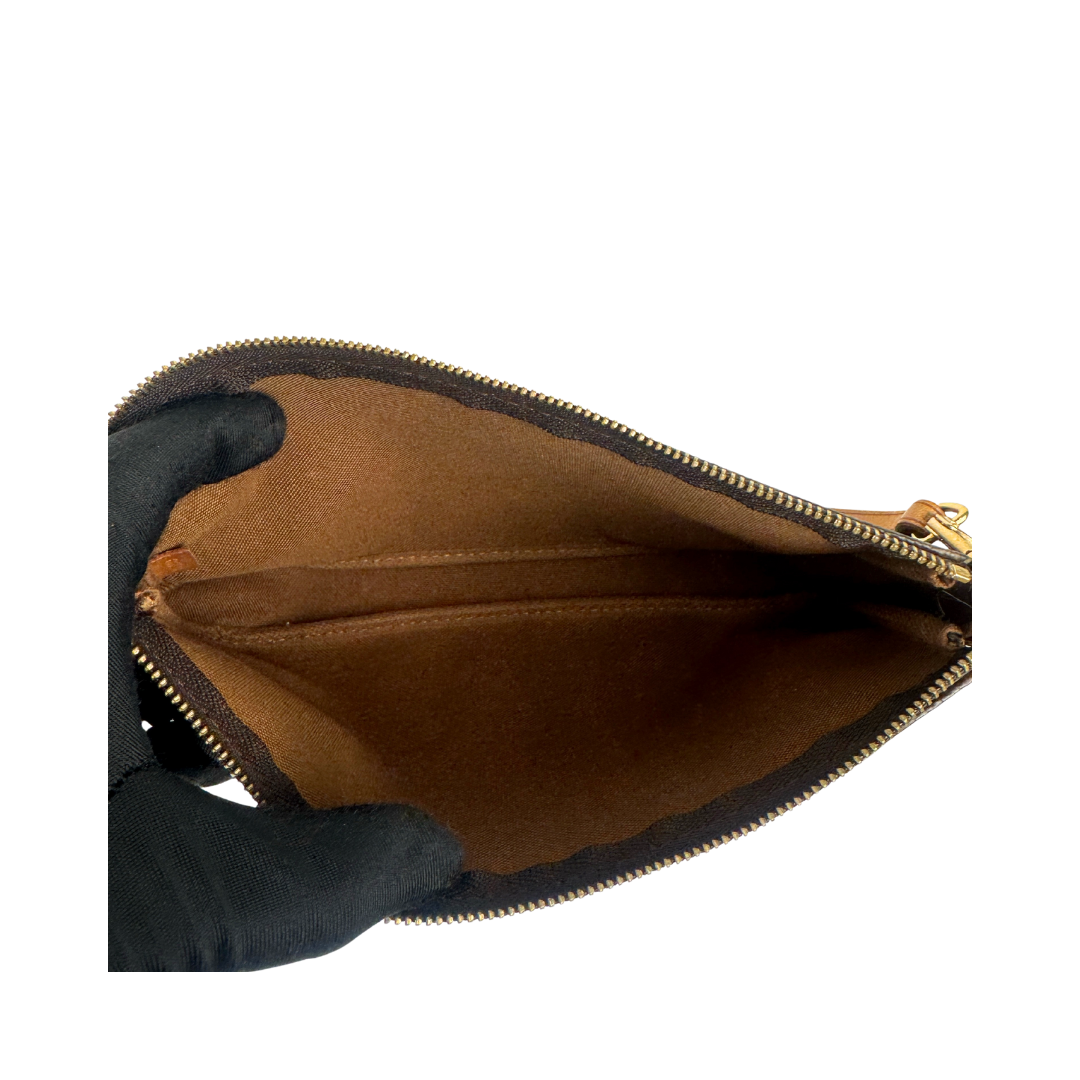 Classic LV Monogram coated canvas exterior, brown canvas interior, and gold-tone hardware. Features vachetta leather strap and zip-top closure. Please note wear on leather strap. Includes certificate of authenticity.