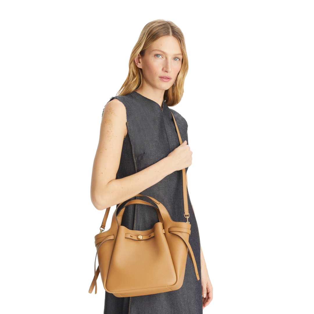 The Small Romy Tote is crafted in soft pebbled leather with a gently gathered silhouette. The ultimate everyday handbag, it is lightweight with a spacious interior organized with a deep pocket. Detailed with a slim belt and our new button logo. Carry it top-handle style or crossbody.