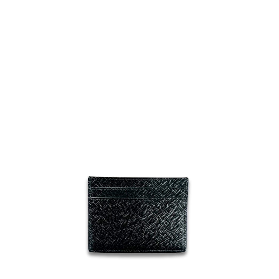 Black grained calfskin exterior. Features 4 exterior card slots and central slot compartment. Includes certificate of authenticity.