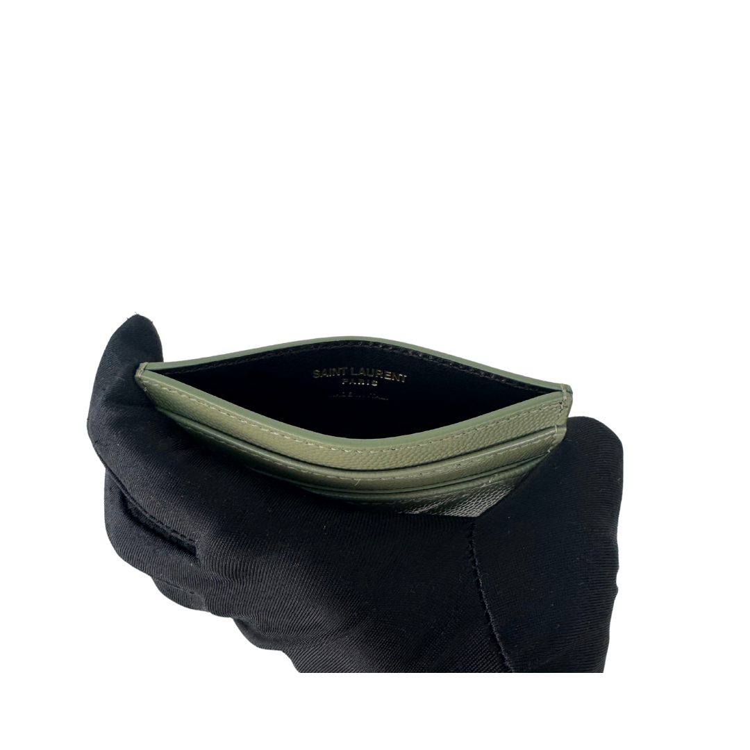 YSL Strong Moss Cassandre Grain de Poudre Leather Card Case